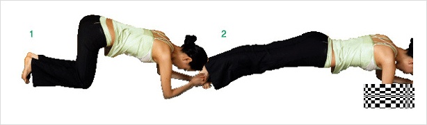 1. 두 무릎과 팔꿈치를 90°로 구부려 바닥에 대고 엎드린 다음.