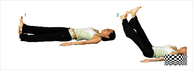 2. 아랫배에 힘을 주고 숨을 내쉬며 두 다리를 90°가 되게 올렸다가 숨을 들이쉬며 천천히 내립니다. 10회 실시 후 발을 바꿔 10회 반복하구요. 20회씩 3세트 실시하면 된답니다.