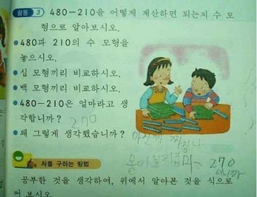 교과서에는 480-210은 얼마인지를 묻는 문제가 출제됐는데요