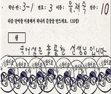 선생님의 아름다운 도장이 너무 멋진(?) 초등학생 기막힌 답변이랍니다.
