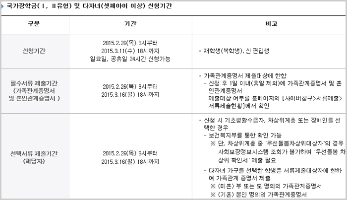 한국장학재단 국가장학금 신청 중 국가장학금 I‚ II유형 및 다자녀 신청기간이예요!