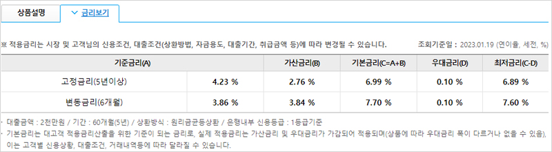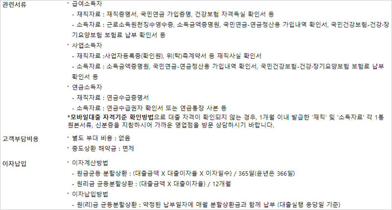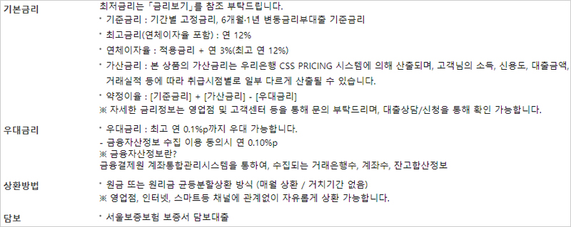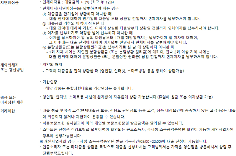 - 연체이자율 : 적용금리 + 연 3%(최고 연 12%)