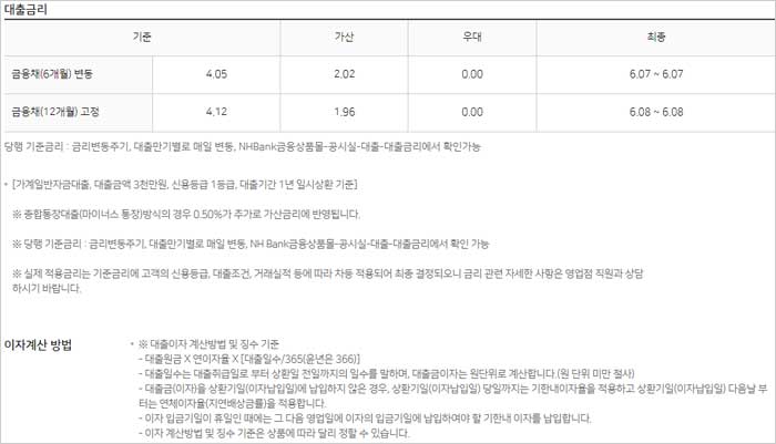 ▶ 대출상품에 대한 내용은 변경될 수 있으며, 변경된 내용이 NH농협은행 인터넷뱅킹 상에 즉시 반영되지 않을 수 있다고 합니다.