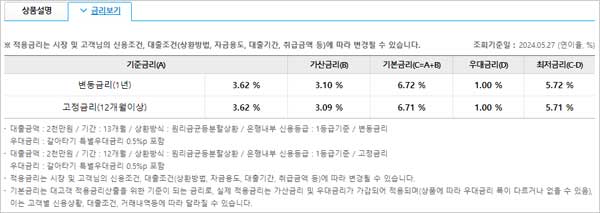 ▶ 중도상환수수료 및 인지세는 없다(5천만원 이하)고 합니다. 담보(신용취급) 또한 없으며 혜택으로는 대출 취급후 성실 거래고객에게는 최대 연 2.0%p 금리 추가 감면 혜택이 있다고 합니다.