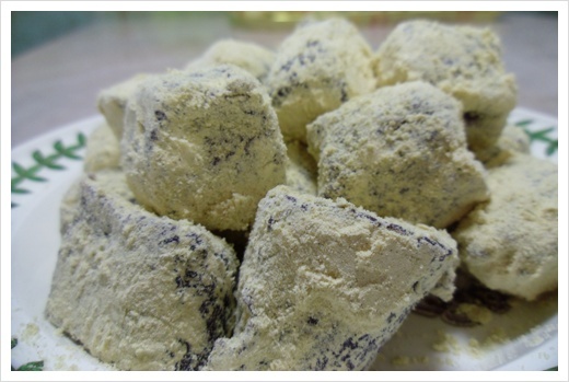 콩가루: 콩을 볶아서 갈아 쓰셔도 되고 없으시면 참깨나 들깨가루 등등 떡이 뒹굴수 있는 것들 중 아무 거나 있으면 된답니다. 없다면 그냥 드셔도 무방하구요.