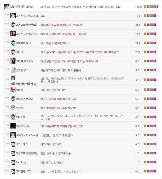 베스트 댓글.. 그리고 흔한 고백 카톡