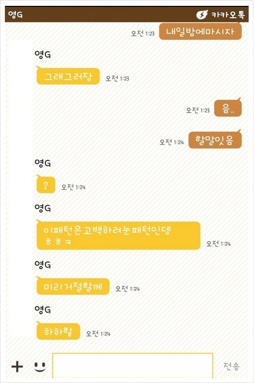 뻘쭘한 상황이 연출되는 흔한 고백 카톡 jpg 라고 하는데요