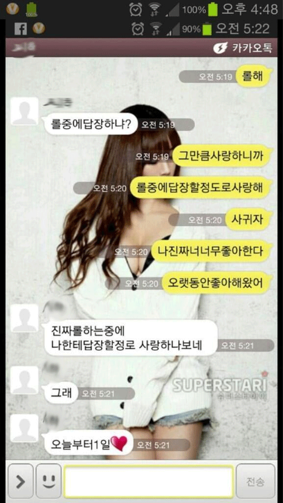 댓글이 베스트 댓글이 되면 아는 여자한테 고백하고 카톡 인증한다고 하는데요